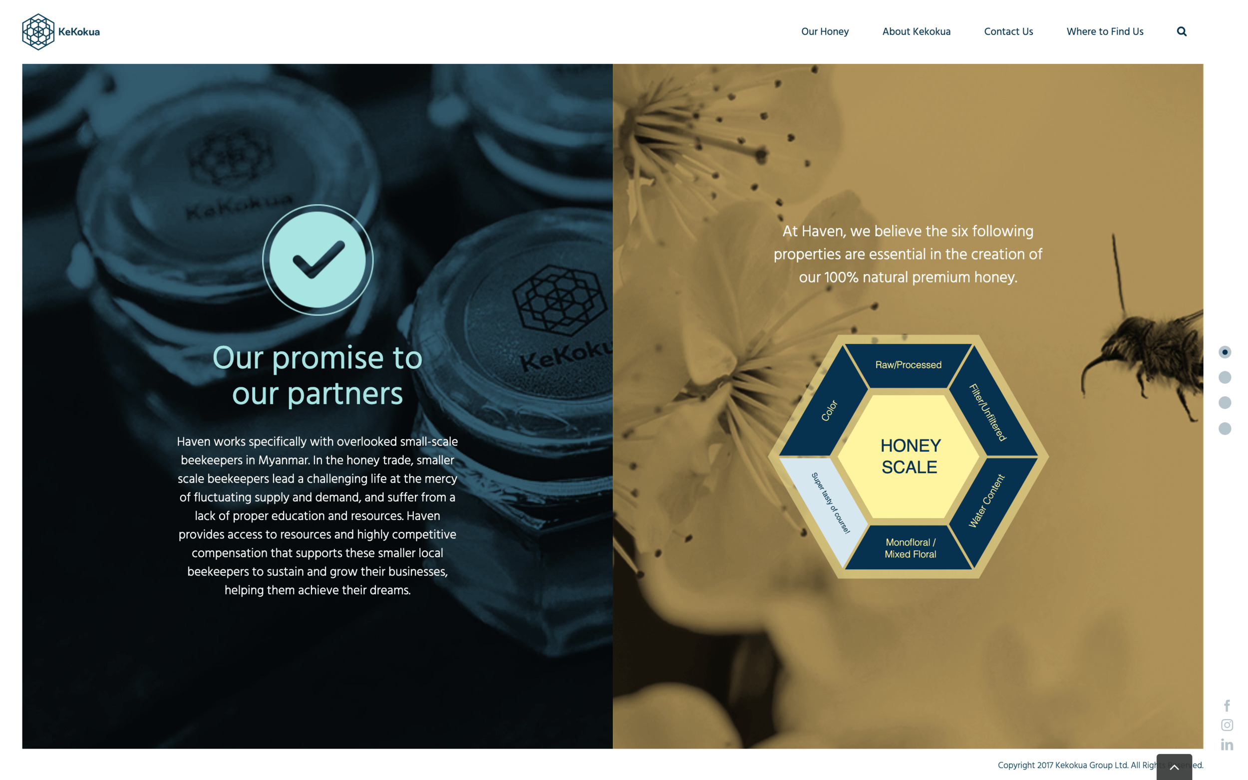In late 2017, our client hired us to develop a full page scroll website that showcases honey manufactured in Myanmar. Custom designs for desktop view were provided by the client and we worked together with the client to decide how responsiveness would work. Because of the difficulty in developing vertical carousel type full page scroll website, it took a total of 1 month to develop, test and fix issues, and finally launch the site before the targeted launch date.